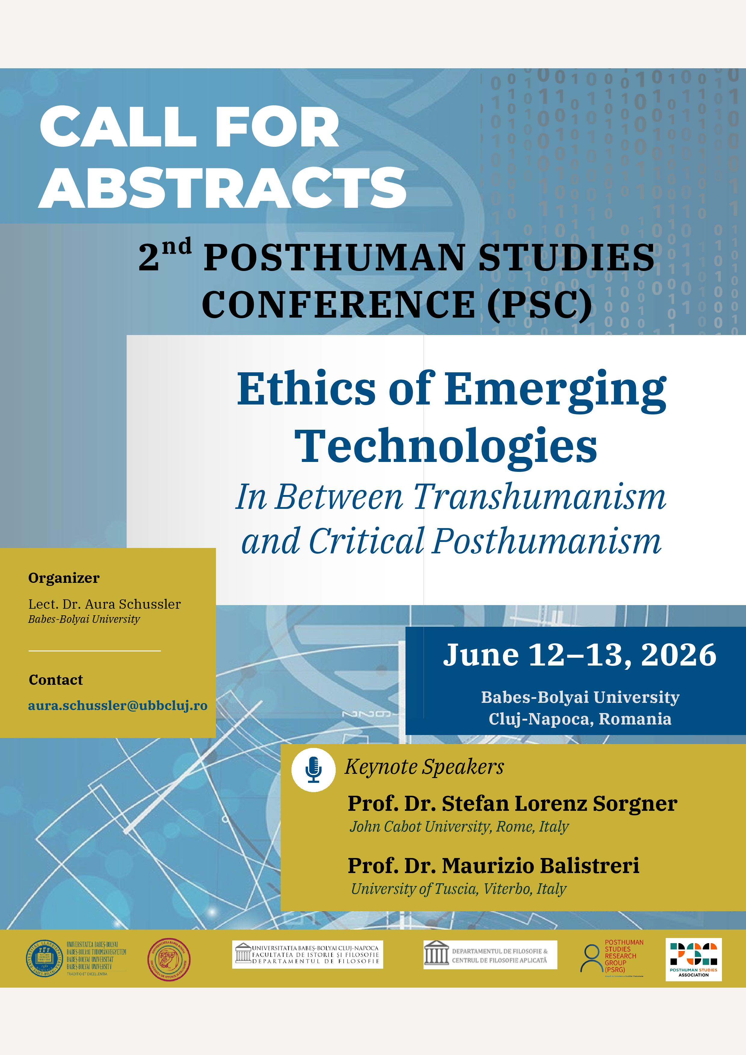 Call for Abstracts: a doua ediție a conferinței internaționale Posthuman Studies Conference (PSC), cu tema: Ethics of Emerging Technologies: In Between Transhumanism and Critical Posthumanism.